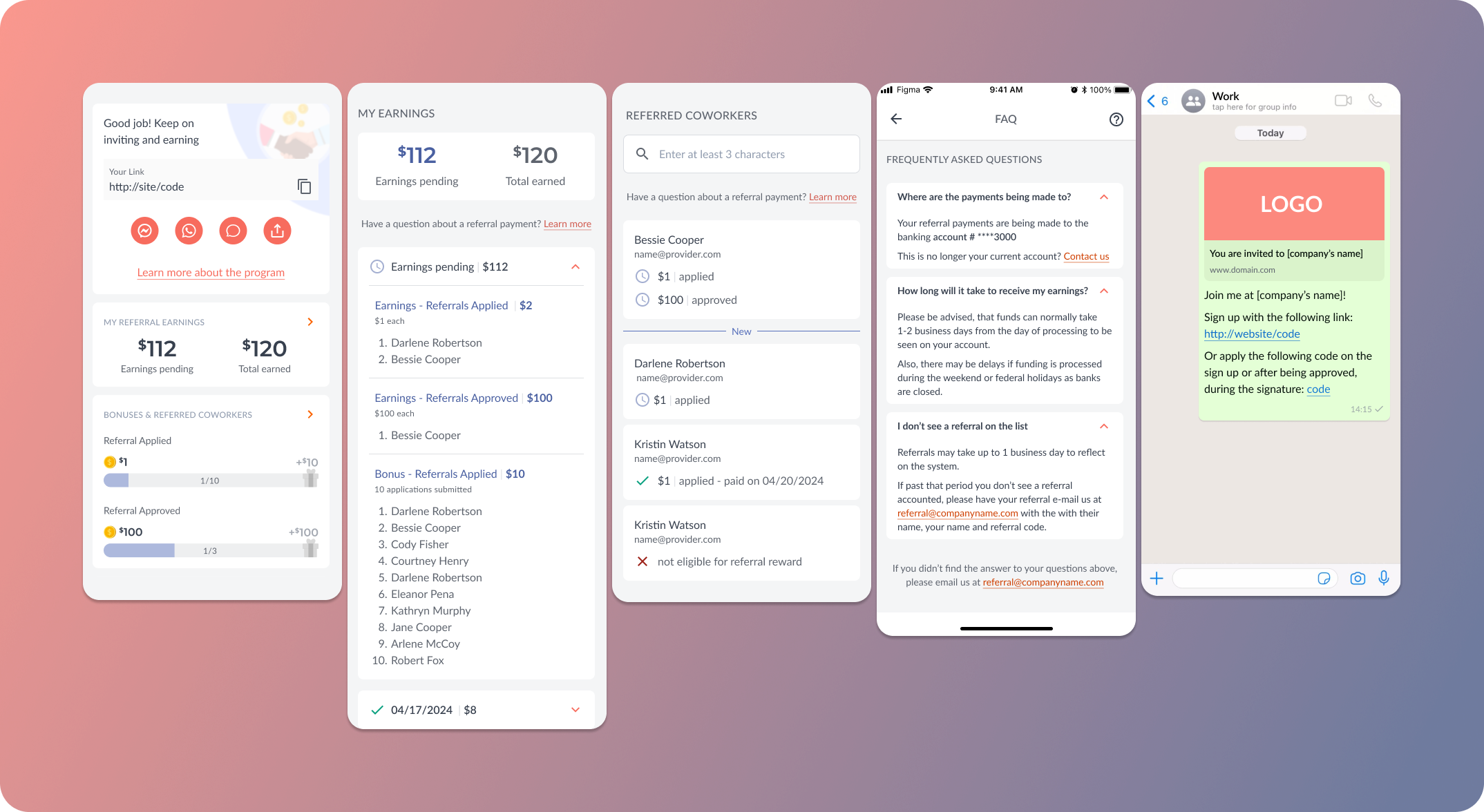 - Presented detailed earning statements showing referral names, earning dates, and payout status. – Feasibility aligned with IT.